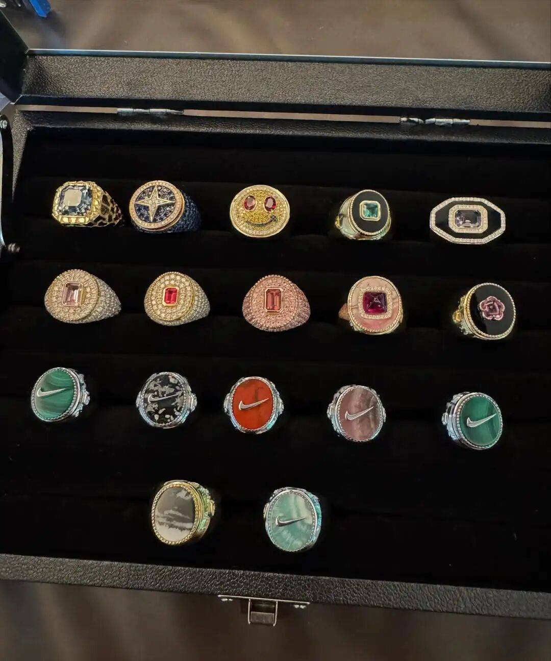 位于中央的 Swoosh Logo 在晶莹剔透的宝石映衬下格外耀眼。这也让人不禁感叹,这或许是市面上唯一一款在宝石上刻有 Nike 标志的珠宝了吧。