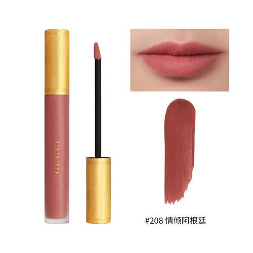 古驰的倾色云雾哑光唇釉则以其独特的丝绒哑光质感而闻名。色号208情倾阿根廷是一种适合多种肤色的经典色调,能让唇部看起来更加立体,赋予双唇一种时尚与优雅的气息。其哑光效果能够有效遮盖唇部瑕疵,适合追求完美妆容的女性。