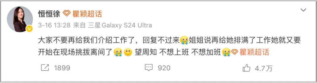 虽然瞿颖姐姐拒绝营业的心情之强烈,就差直接写在脸上了,但“不幸”的是,她的最新工作貌似已经在路上了。