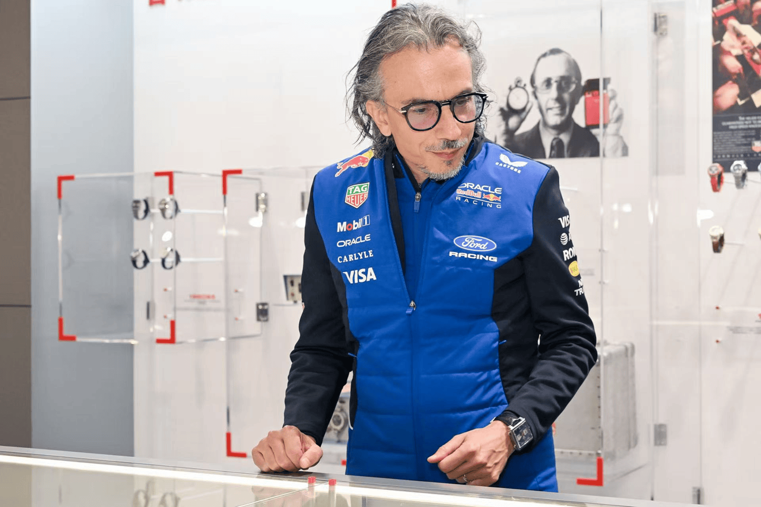 参观过程中,Mekies对摩纳哥系列腕表展现出浓厚兴趣,这款承载着赛车经典记忆的腕表,其精准性能与经典设计,直观呈现了泰格豪雅与甲骨文红牛车队共同的极致追求,也彰显了品牌百年传承的制表匠心与竞速基因。