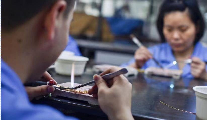 新金珠宝始终视人才与产品为生命。为确保产品质量,新金珠宝工厂现拥有200多名高级质量技术人员,伟德国际吧皆是在珠宝设计和制造方面具备丰富的经验和高超的技术的中坚人才;同时,还有300多名熟练的生产工人,严格按国家标准生产和加工珠宝首饰,确保产品的高质量和精细工艺。并且,新金珠宝高度重视智能化、科技化生产,为提升质量和效率,公司配备了近400台先进加工设备,为每一项生产工艺保驾护航。