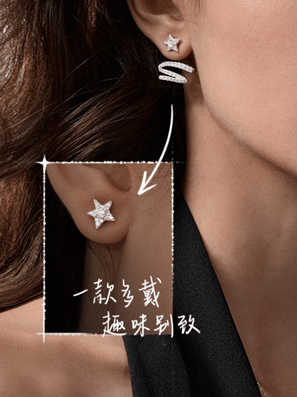 星光飘带耳钉通过有趣的可拆卸设计,实现了“一款两戴”的功能突破。双层佩戴时如流星划过耳际的浪漫轨迹,单颗佩戴时则展现出温柔灵动的气质,轻松适配多元场合,呼应现代女性游刃有余的生活节奏,也充分体现了品牌对现代女性多元化生活场景的深入理解。