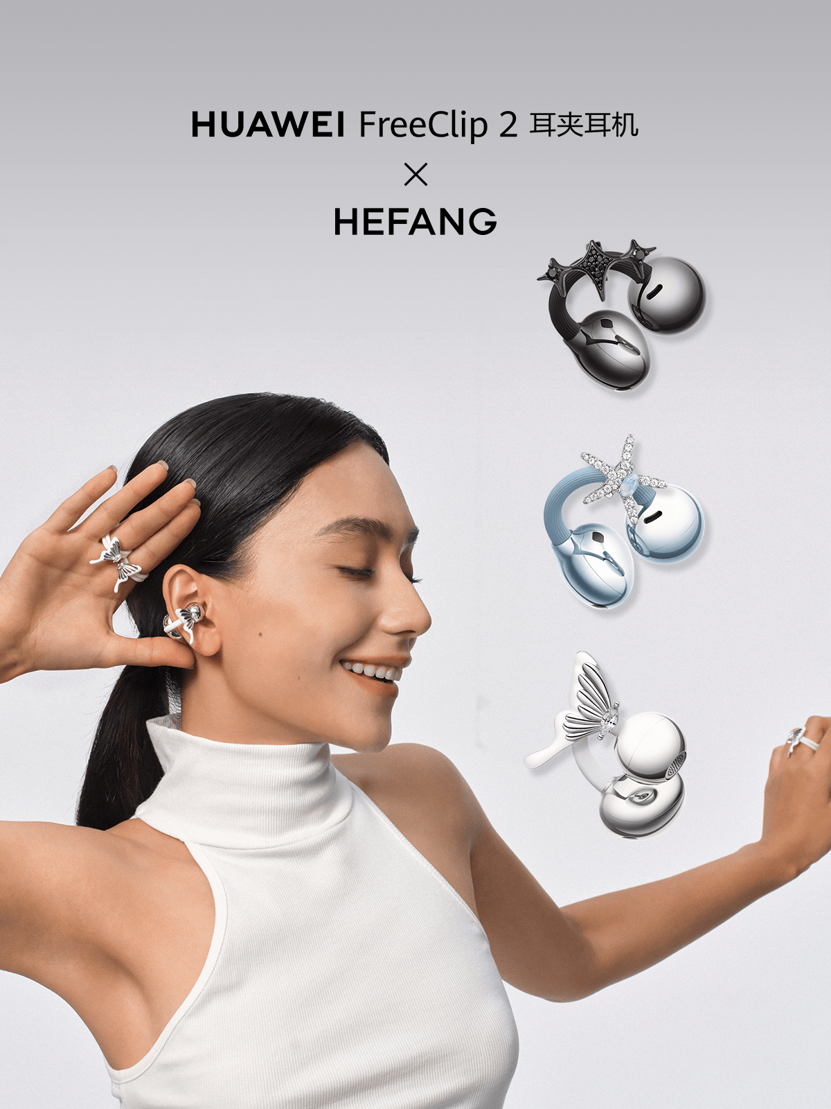HUAWEI FreeClip 2 × HEFANG联名耳机配饰,将时尚美学与先锋科技巧妙融合,联合打造三款耳机配饰,引领时尚电子配饰新风潮。此次跨界合作不仅将HEFANG独特的设计语言注入先锋科技产品,重新定义“电子配饰”这一全新品类,为未来时尚配饰的发展方向提供了全新思路。