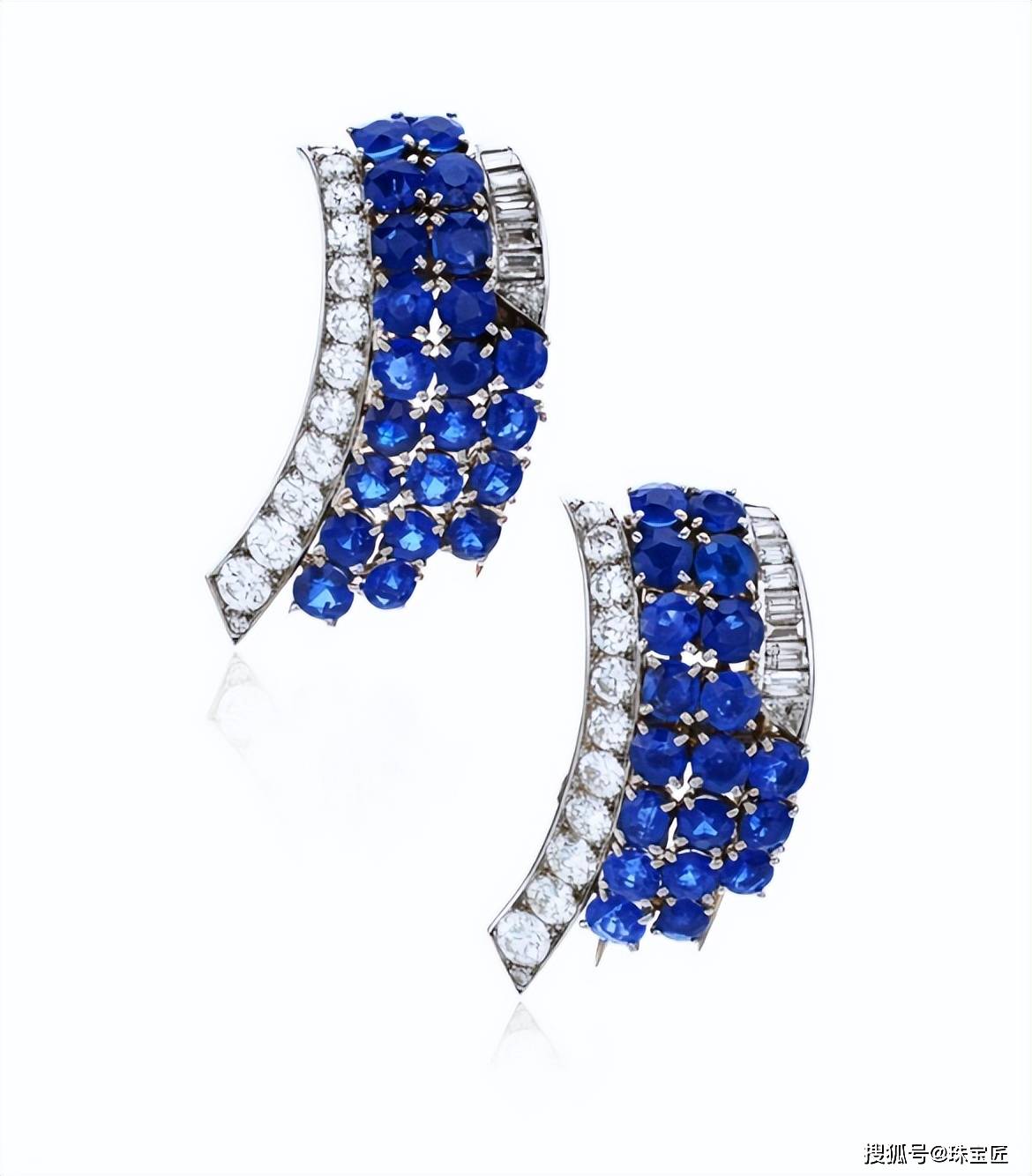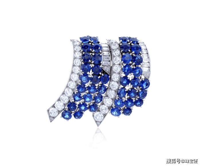 这枚蓝宝石钻石双夹式胸针,曾属于奥斯曼帝国最后一位皇室成员:内斯利沙·苏丹公主,由Van Cleef & Arpels在1937年出品。
