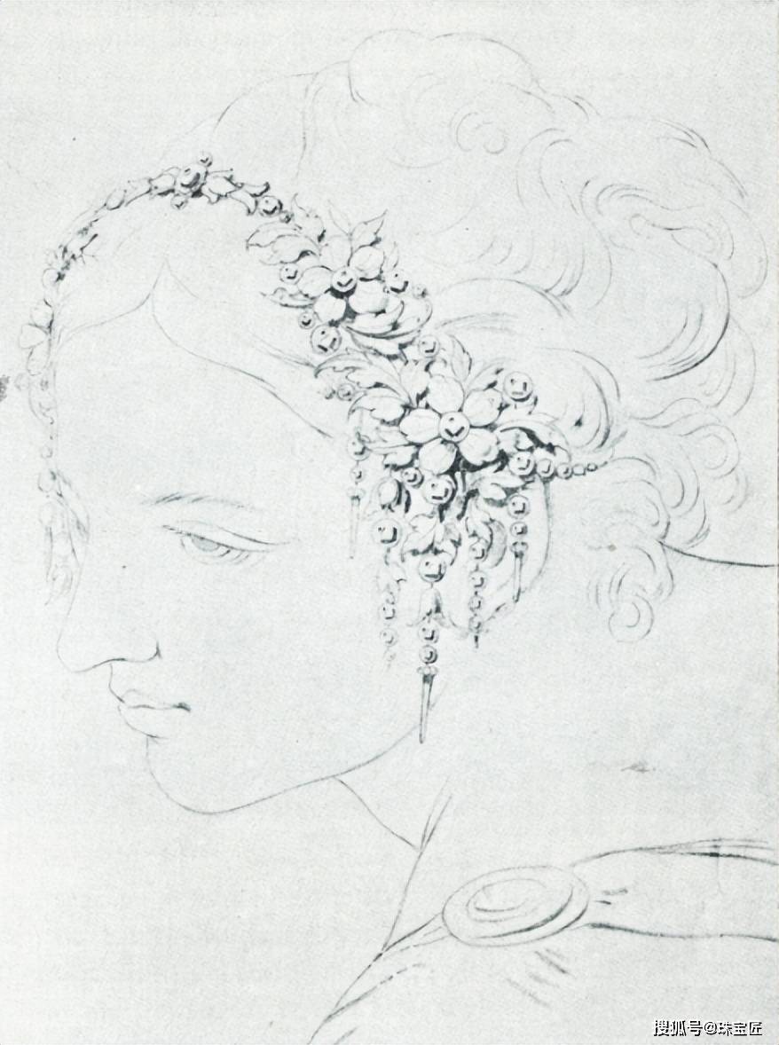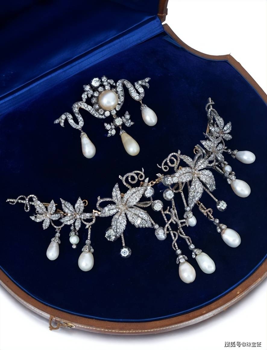 这套珠宝中所镶嵌的天然珍珠,最初属于萨克森的库尼贡德——蒙托罗侯爵夫人(1774-1820年)。