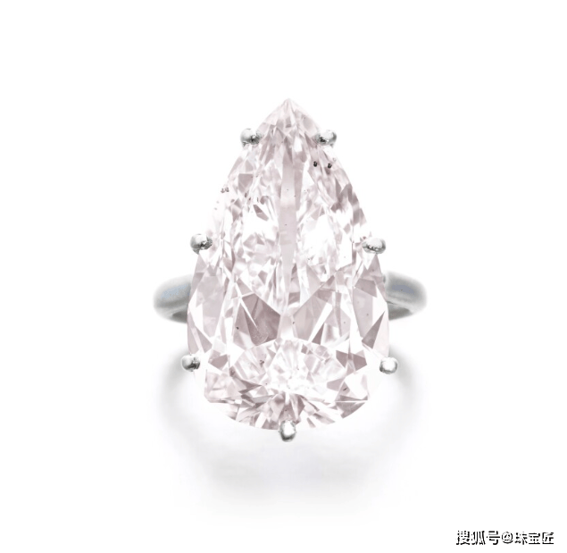 2021年,苏富比纽约“瑰丽珠宝”专场曾上拍一枚15.64克拉的梨形粉钻戒指,颜色为淡粉色(Very Light Pink),净度为SI1级,最终以USD770,200 (合550万人民币)的价格成交。