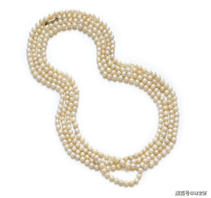 天然珍珠项链,四层设计,共由353颗天然海水珍珠串联而成,珍珠呈圆形、椭圆形、水滴形等不同形状,直径在4.6mm-5.5mm之间,珍珠的形状虽然并不规整,但款式别有一番韵味~