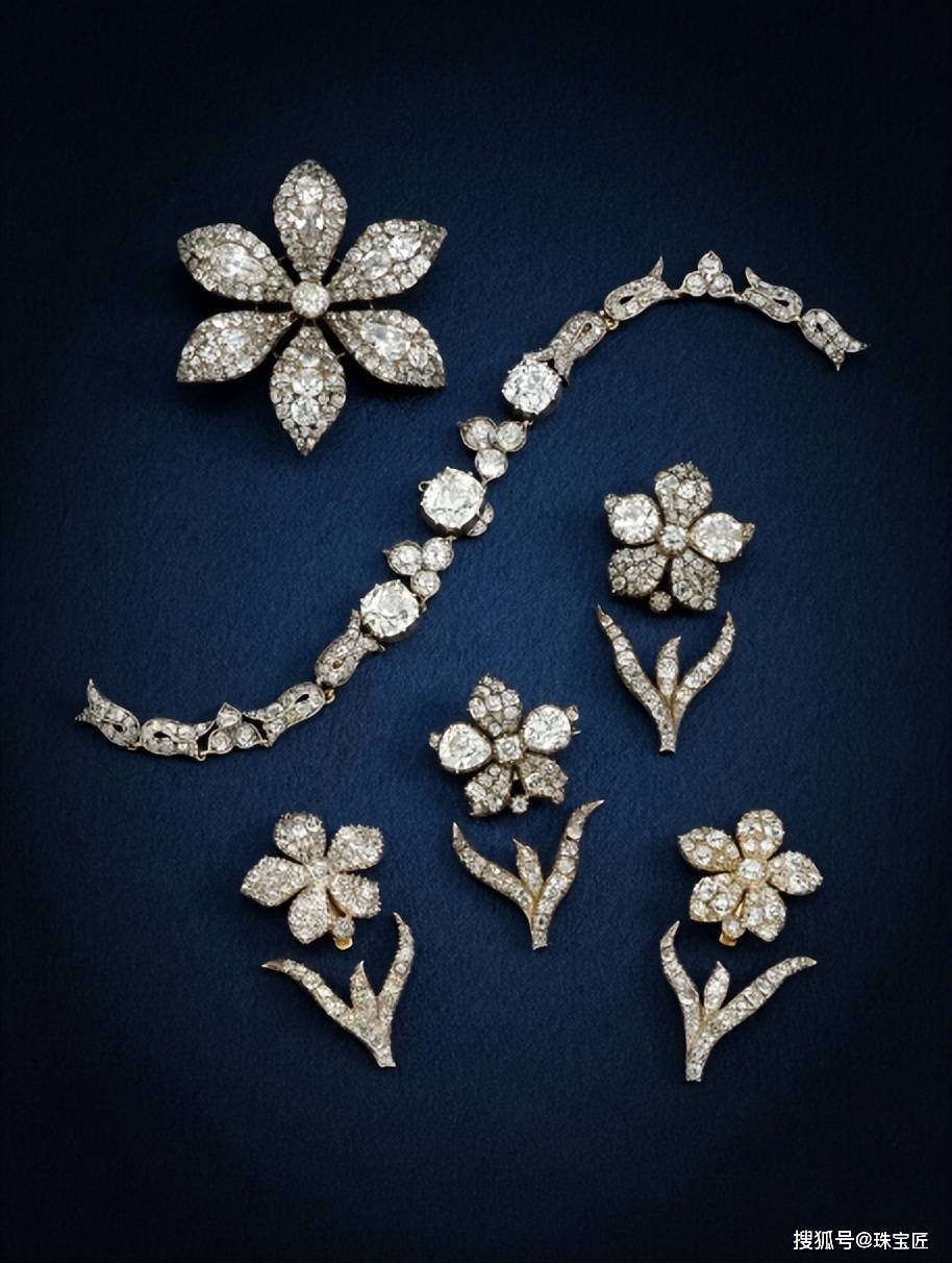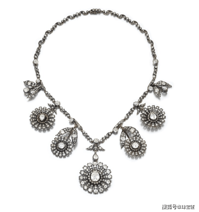 除此之外,这条项链可拆分成两个胸针扣、六个发夹扣以及两个头饰扣,款式灵活、多变,是19世纪审美与工艺的杰出代表。