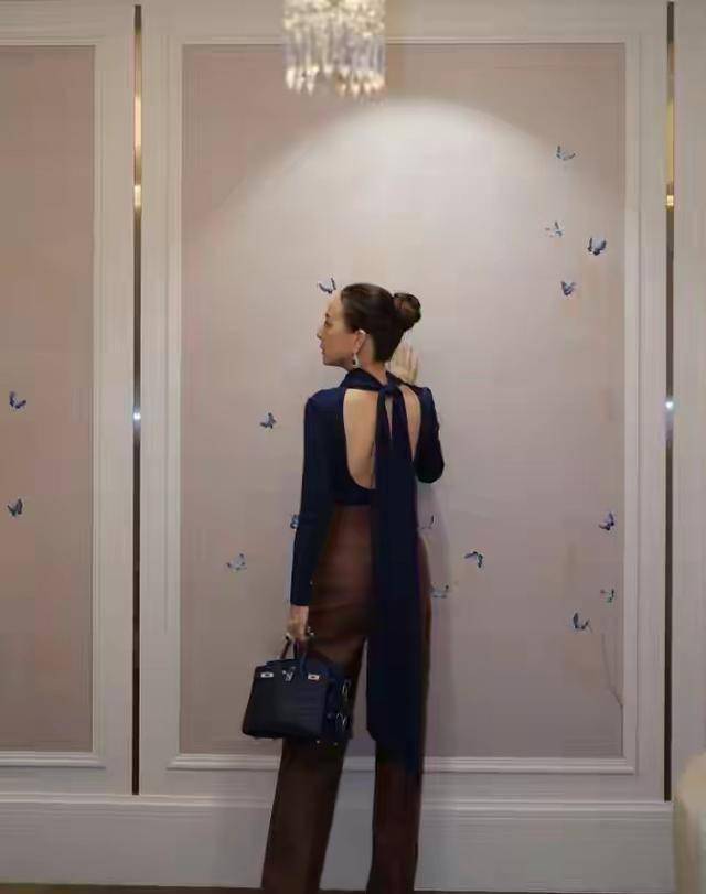 大露背设计的上衣,自然下垂的系带,展现出绝美的背部线条,就连直筒版型伟德国际victor1946的长裤,也藏不住她的好身材。