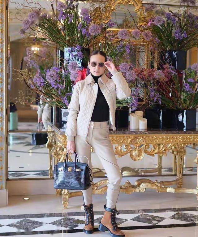 羽绒服也能被她穿出时尚感,搭配卡其裤,配双低跟款式的马丁靴,又美又飒,妥妥的“气质女神”。