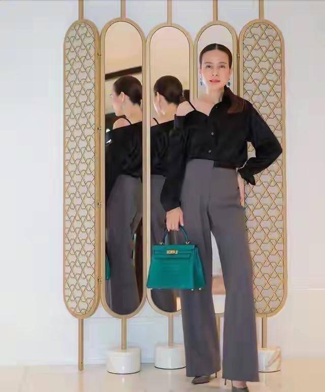 即将步入花甲之年的伍伦盼,根本看不出年龄感,长相英气、气场强大,一看就是“富婆相”。