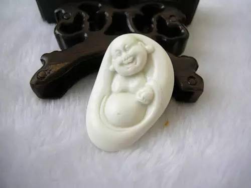 最近这二年,在市场上发现了这种玉石,象牙玉,最初也是真的不知道这是什么,后听人介绍,这属于西藏产的象牙玉,价格也不贵,就象图中所示的佛公,请回家也仅需七八十元而已。从图片上朋友们可以看出,这种玉质地非常细腻,颜色洁白,不透明。