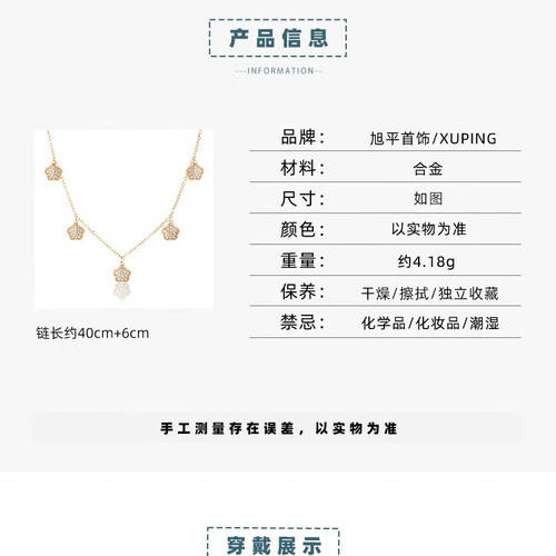这款项链的参数也让人心动不已:链长约40cm+6cm,重量约4.18g,轻巧的设计让它在佩戴时不会感到负担,反而如同第二层肌肤般贴合,时刻陪伴着你。而它的材料——合金,更是保证了项链的耐用性与光泽感,让你在各种场合都能自信展现。