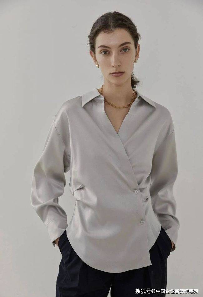最后我们来看一下,都市丽人们绕不开的衬衫——要么胜在面料,要么胜在剪裁。这件面料上是能呈现出光泽的缎面,剪裁上用的交叉式,腰两侧还有抽褶来制造腰线,没得挑