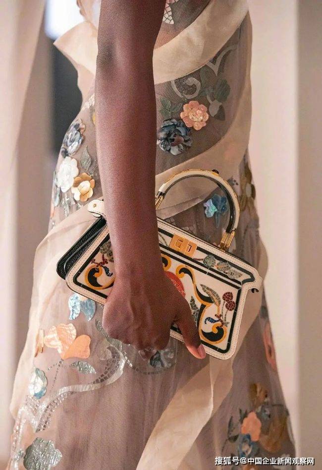 再看今年Fendi的高定也是一个路子,因为是高定,所以工艺相对繁复,刺绣、钉珠显得有点“生人勿近”,但不妨碍我们掌握它印花的精髓。