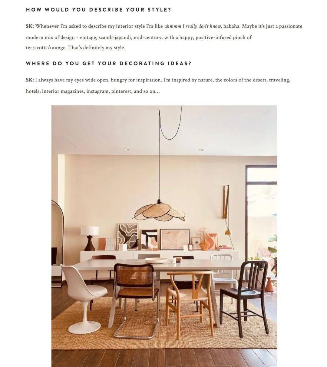 decor8 是一个致力于分享设计师真实的意见、新鲜的装饰理念、美好的室内空间、独立的艺术设计、产品和服务的网站。通过设计师的真诚分享,希望激发读者过上更充实、更真实和更有创意的生活,你可以从文章中读到设计师的风格理念和灵感来源,甚至是家居好物分享。最近有很多不同国家的独立设计师在写关于2022最新的室内设计趋势文章,文字内容非常生活化,读起来不会枯燥。