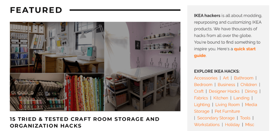 IKEA Hackers 是一个关于宜家家具和产品二次创作和再利用的网站。分享的内容都是非常干货,例如“三步完成书架添层改造”;对于家具改造感兴趣的小伙伴完全可以跟着上面的家具改装做起来。还有很多关于宜家家具的红黑榜等内容,对于有租房需求的人非常实用。