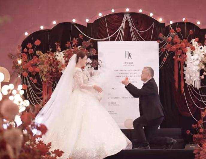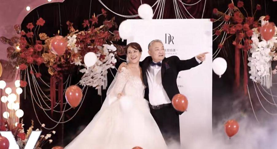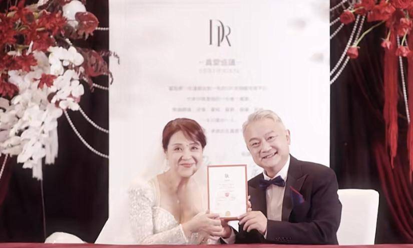 欧阳奋强精心布置了现场,两人青春时期的照片串成走廊,见证了相伴几十年的点点滴滴。他单膝跪地,为妻子戴上DR钻戒,承诺这一生只爱她一人。