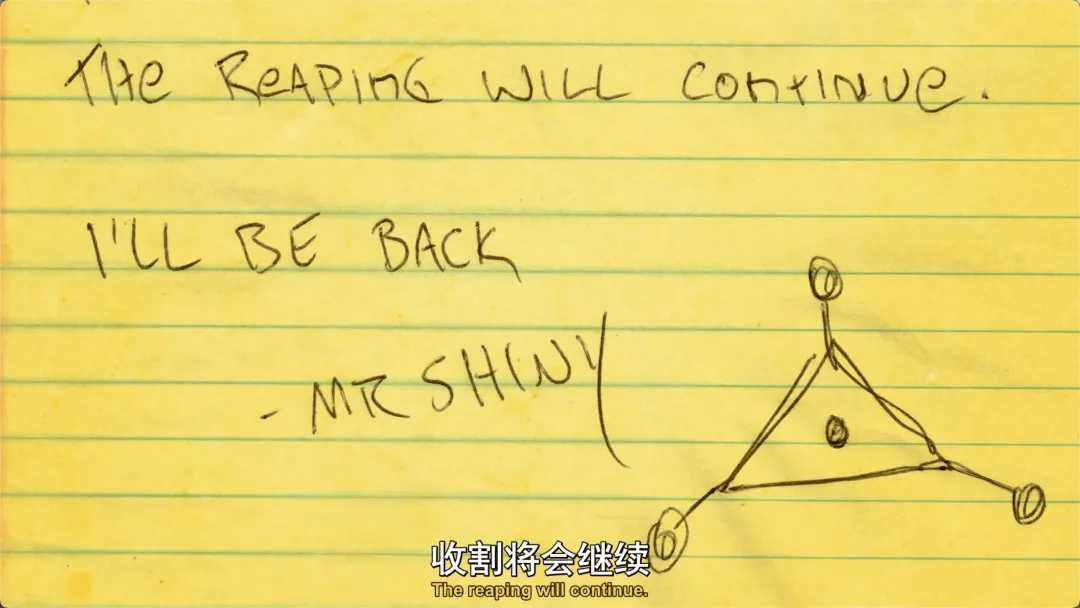 署名“闪亮先生”的凶手写道“感谢你们抓不到我”,并阴森预警:“十次轮回将至……我会归来。”