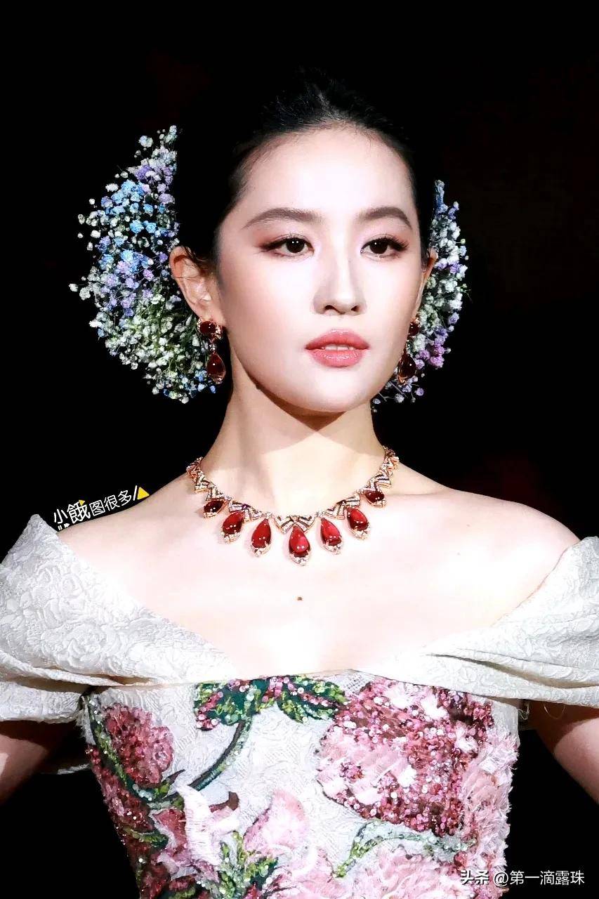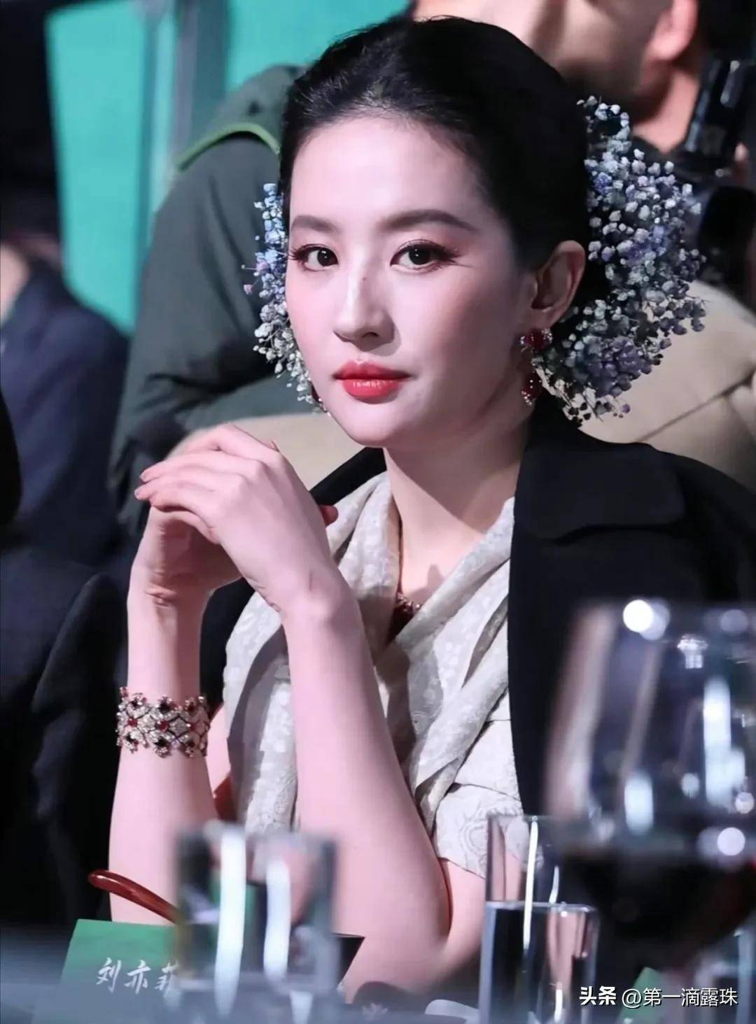 可直播镜头里,观众的注意力却全被刘亦菲的脸牢牢锁定:复古盘发间簪着几十元的满天星鲜花头饰,淡金羽毛眼妆衬得眉眼温润,面部立体的骨相在灯光下自带高光,连肌肤的细腻光泽都清晰可见。